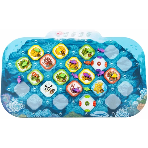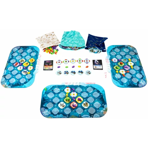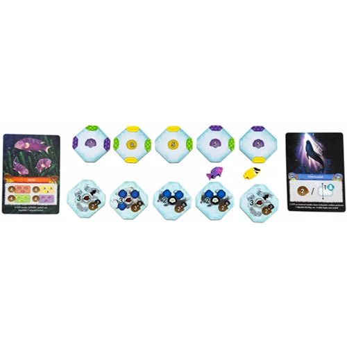 A Korallzátonyban egy saját, színes óceáni világot építünk. Halakat, korallokat és különféle tengeri élőlényeket draftolunk körökről körökre, majd úgy helyezzük őket a táblánkra, hogy minél több kombinációt hozzunk létre. Ha a megfelelő színű halak körbevesznek egy korallt, az aktiválódik, életre kel, és új halak költözhetnek be. Így építjük fel lassan a saját kis zátonyunkat. A játék nem csak arról szól, hogy szépen rakosgatjuk a lapkákat. Folyamatosan gondolkodnunk kell, mert az élőlények aktiválhatók vagy akár mozgathatók is, és a kagylóinkat olyan taktikai helyzetekhez használjuk, ahol még egy extra húzás vagy mozdítás adja a pontot. A cél, hogy a végére a mi ökoszisztémánk legyen a leggazdagabb és legjobban működő. |